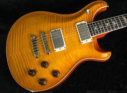 形は王道のPRS、非対称ダブルカッタウェイ。アームなしのストップテイルピース。まぁ、レスポールみたいなやつね。これをシンラインかセミアコにしてくれると最高。色は違うのがいい。